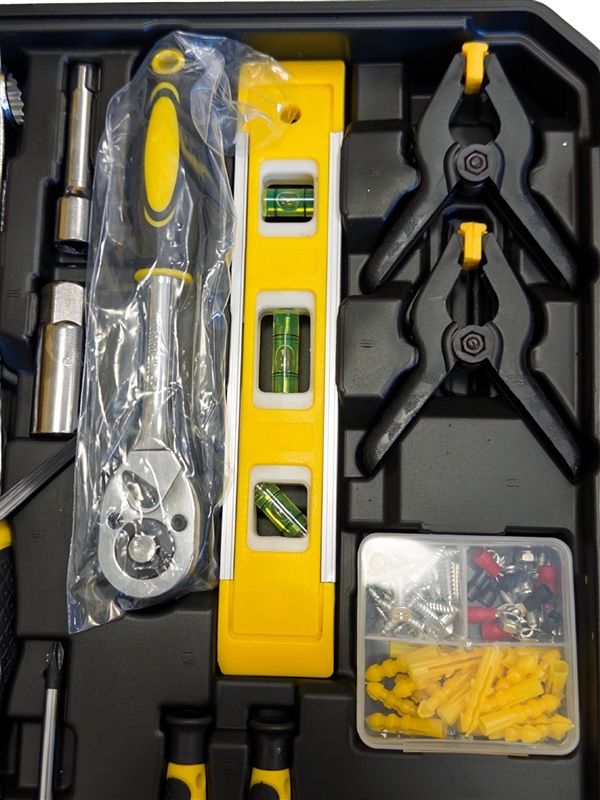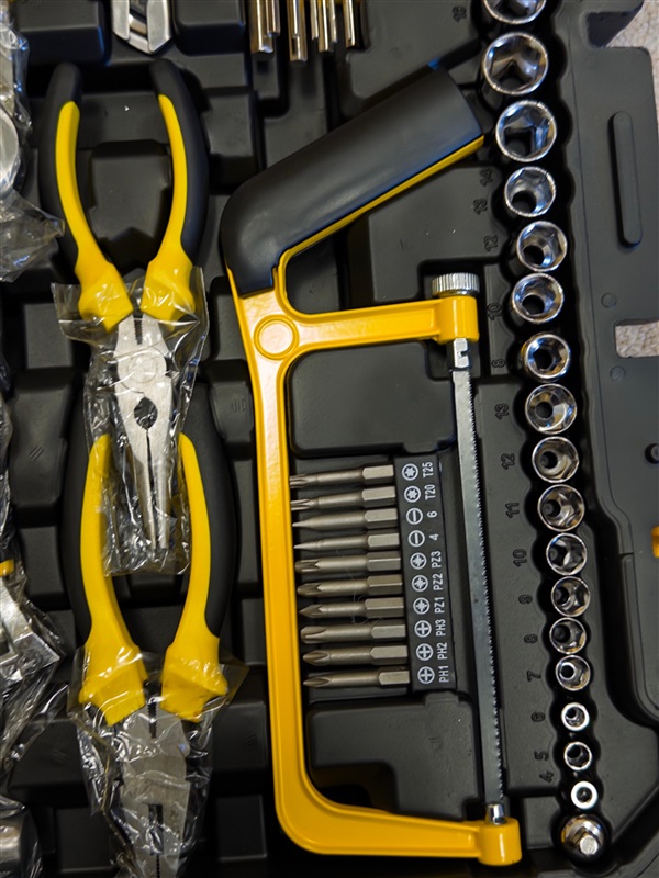 ✅ 158 kusů – Obsahuje ráčny, nástavce, šroubováky, kleště, pásku, kladivo a další